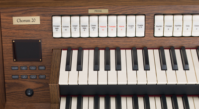 Chorum 20 jest wyposażony w klawiatury 2 x 61 klawiszy „Tracker Action”. Znając znaczenie klawiatury w klasycznych organach, wybraliśmy jej komponenty z najwyższą starannością. Wrażenie dotykowe zapewniane przez klawiaturę to „Tracker Action”, czyli jak w najlepszych mechanicznych organach tradycyjnych. Czułość dotyku jest również przydatna w przypadku brzmień orkiestrowych lub MIDI. Dla najbardziej wymagających organistów Chorum 20 jest również dostępny z opcjonalnymi drewnianymi klawiaturami, w tym z wyjątkowymi AWK.