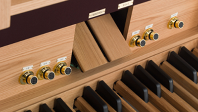 Pokrętła, wahliwe włączniki rejestrów, pistony kciukowe, pistony nożne i wyświetlacz zapewniają skuteczną kontrolę nad całym instrumentem. Przyciski, wahliwe włączniki do aktywacji lub dezaktywacji rejestrów, pistony i wszystkie inne elementy sterujące zostały zaprojektowane i rozmieszczone ergonomicznie, aby szybko i łatwo reagować na żądania użytkowników. Wyświetlacz znajduje się po prawej stronie urządzenia. Dostępnych jest wiele przycisków ustawień kombinacji i ogólnych. Układ jest elegancko zintegrowany z instrumentem, aby umożliwić szeroki zakres możliwości i personalizacji, wszystko jest w zasięgu ręki.