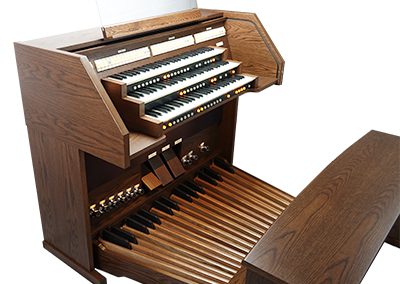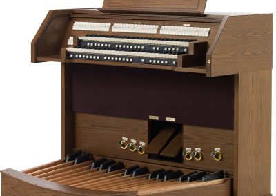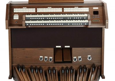 W wersji Delux konsola jest wykonana w dębie jasnym lub dębie ciemnym z 32. nutowym pedałem i ławką ze schowkiem jak i  pulpitem na nuty.