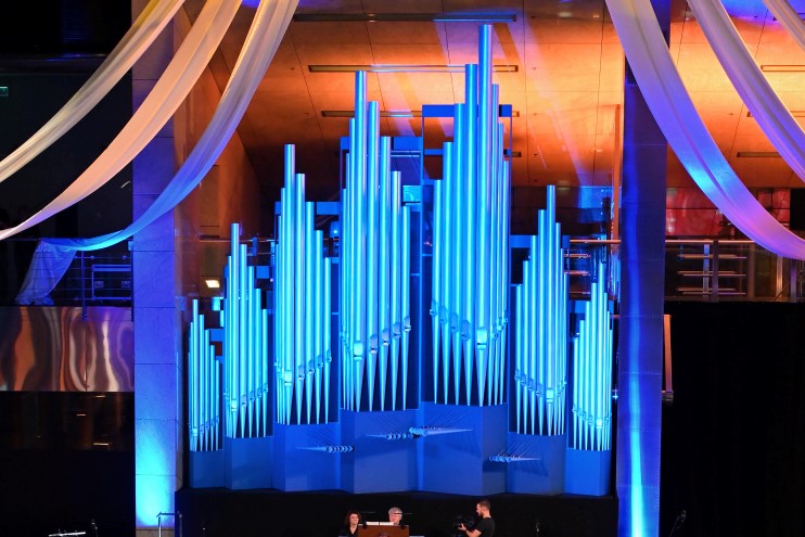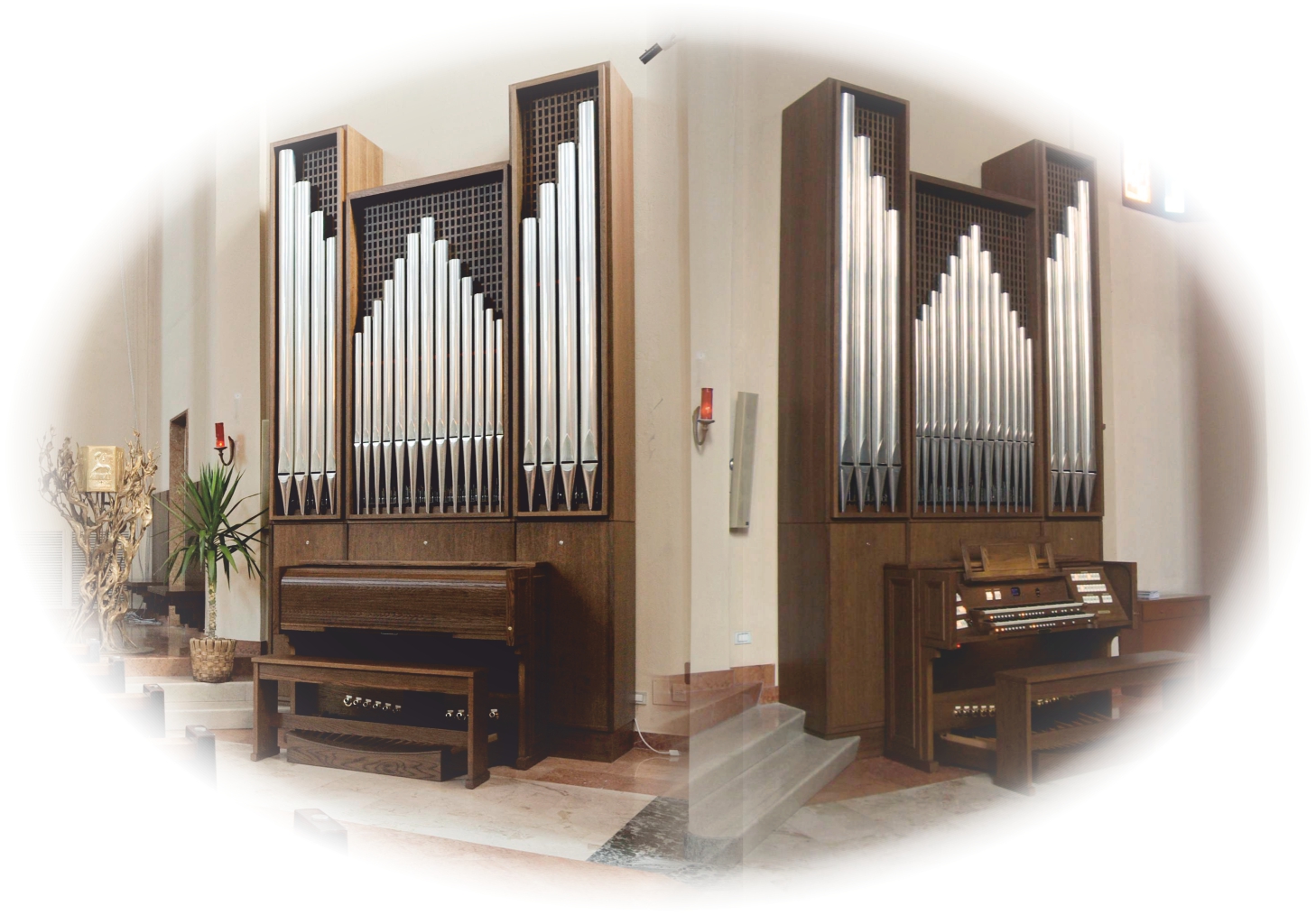 Organy hybrydowe to doskonałe rozwiązanie łączenia kontuaru Viscount zarówno z głośnikami jak i wiatrownicą organów piszczałkowych.