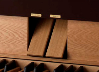 Świadomi znaczenia, jakie ma klawiatura w klasycznych organach, wybraliśmy ją z najwyższą uwagą, dbając o to, aby była wykonana z najlepszych komponentów. Mechanika została zaprojektowana w taki sposób, aby zapewnić bardzo cenione odczucie „Tracker Tuch”, to znaczy większą odporność na naciśnięcie przycisku w początkowej fazie jego uruchomienia. Rezultatem jest konsekwentny, a jednocześnie wygodny dotyk, który nie zawodzi organisty w działaniu. Klawiatura ta jest również wrażliwa na dynamikę, przydatną funkcję zarówno w sekcji Midi, jak i Orkiestrze, oraz w celu uzyskania efektu „Tracker Touch”, który reguluje przejściowy atak piszczałek w odniesieniu do szybkości naciskania klawiszy.