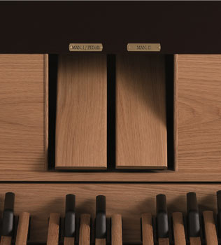 Świadomi znaczenia, jakie ma klawiatura w klasycznych organach, wybraliśmy ją z najwyższą uwagą, dbając o to, aby była wykonana z najlepszych komponentów. Mechanika została zaprojektowana w taki sposób, aby zapewnić bardzo cenione odczucie „Tracker Tuch”, to znaczy większą odporność na naciśnięcie przycisku w początkowej fazie jego uruchomienia. Rezultatem jest konsekwentny, a jednocześnie wygodny dotyk, który nie zawodzi organisty w działaniu. Klawiatura ta jest również wrażliwa na dynamikę, przydatną funkcję zarówno w sekcji Midi, jak i Orkiestrze, oraz w celu uzyskania efektu „Tracker Touch”, który reguluje przejściowy atak piszczałek w odniesieniu do szybkości naciskania klawiszy.