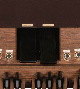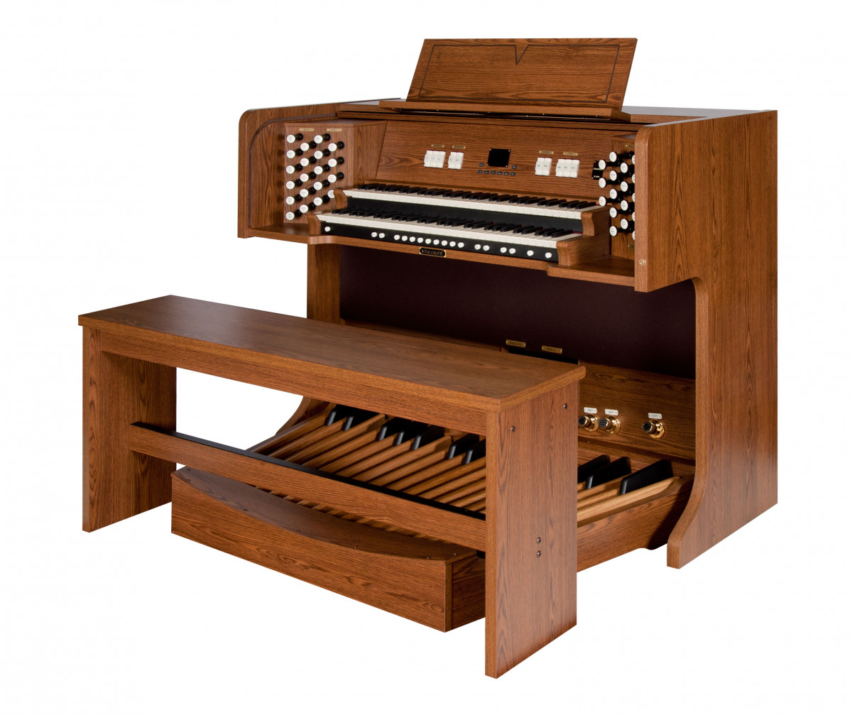 2 manuały z opatentowaną klawiaturą „Tracker Touch” z wychwytem i regulowaną dynamiką dla głośów orkiestry i midi |