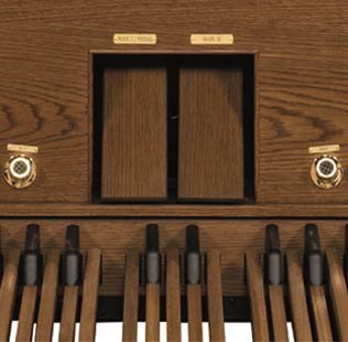 Świadomi znaczenia, jakie ma klawiatura w klasycznych organach, wybraliśmy ją z najwyższą uwagą, dbając o to, aby była wykonana z najlepszych komponentów. Mechanika została zaprojektowana w taki sposób, aby zapewnić bardzo cenione odczucie „Tracker Tuch”, to znaczy większą odporność na naciśnięcie przycisku w początkowej fazie jego uruchomienia. Rezultatem jest konsekwentny, a jednocześnie wygodny dotyk, który nie zawodzi organisty w działaniu. Klawiatura ta jest również wrażliwa na dynamikę, przydatną funkcję zarówno w sekcji Midi, jak i Orkiestrze, oraz w celu uzyskania efektu „Tracker Touch”, który reguluje przejściowy atak piszczałek w odniesieniu do szybkości naciskania klawiszy.